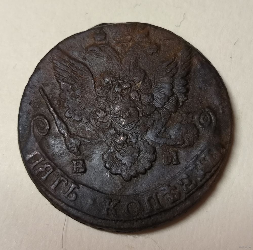 С рубля! 5 копеек 1784 Екатерина II. Медь Российской империи!