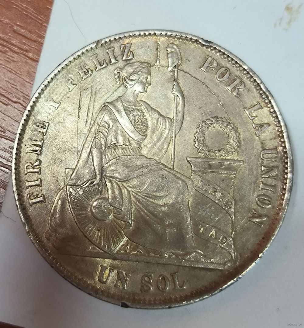 С рубля без мц! 1 соль 1872 Перу остатки блеска! Редкая! Ваушная! Надо брать!