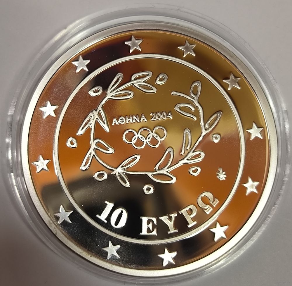 С рубля без мц! 10 евро 2004 Греция - Гандбол 34г сер. 925 пр. - идеал ! Футляр и серт-т!
