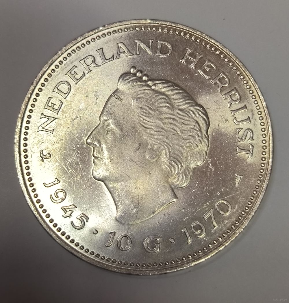 С рубля без мц! 10 гульденов 1970 Нидерланды ярчайшая серебро