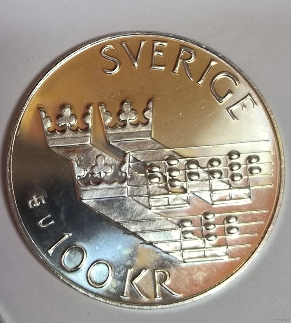 С рубля без мц! 100 крон 1985 Швеция серебро идеал!