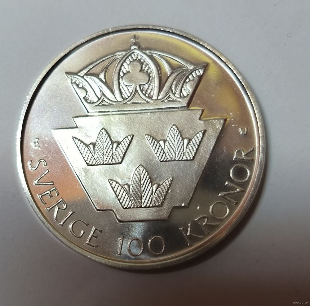 С рубля без мц! 100 крон 1985 Швеция серебро! Красивая!