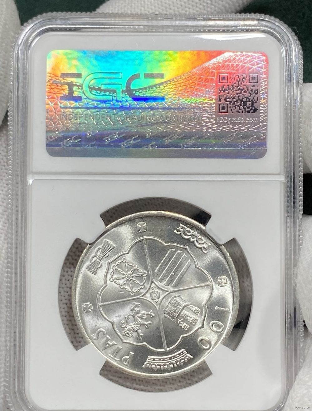 С рубля без мц! 100 песет 1966(68) Испания ms 66 много лучей! Серебро!