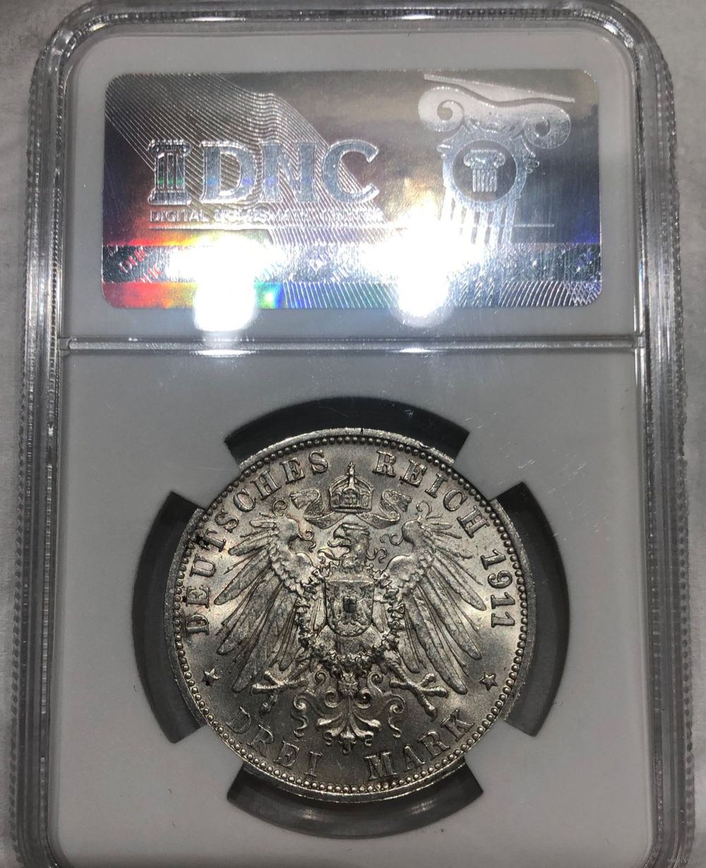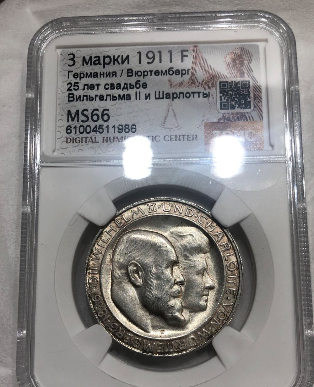 С рубля без мц! 3 марки 1911 Вюртемберг ms 66 Шарлотта люкс