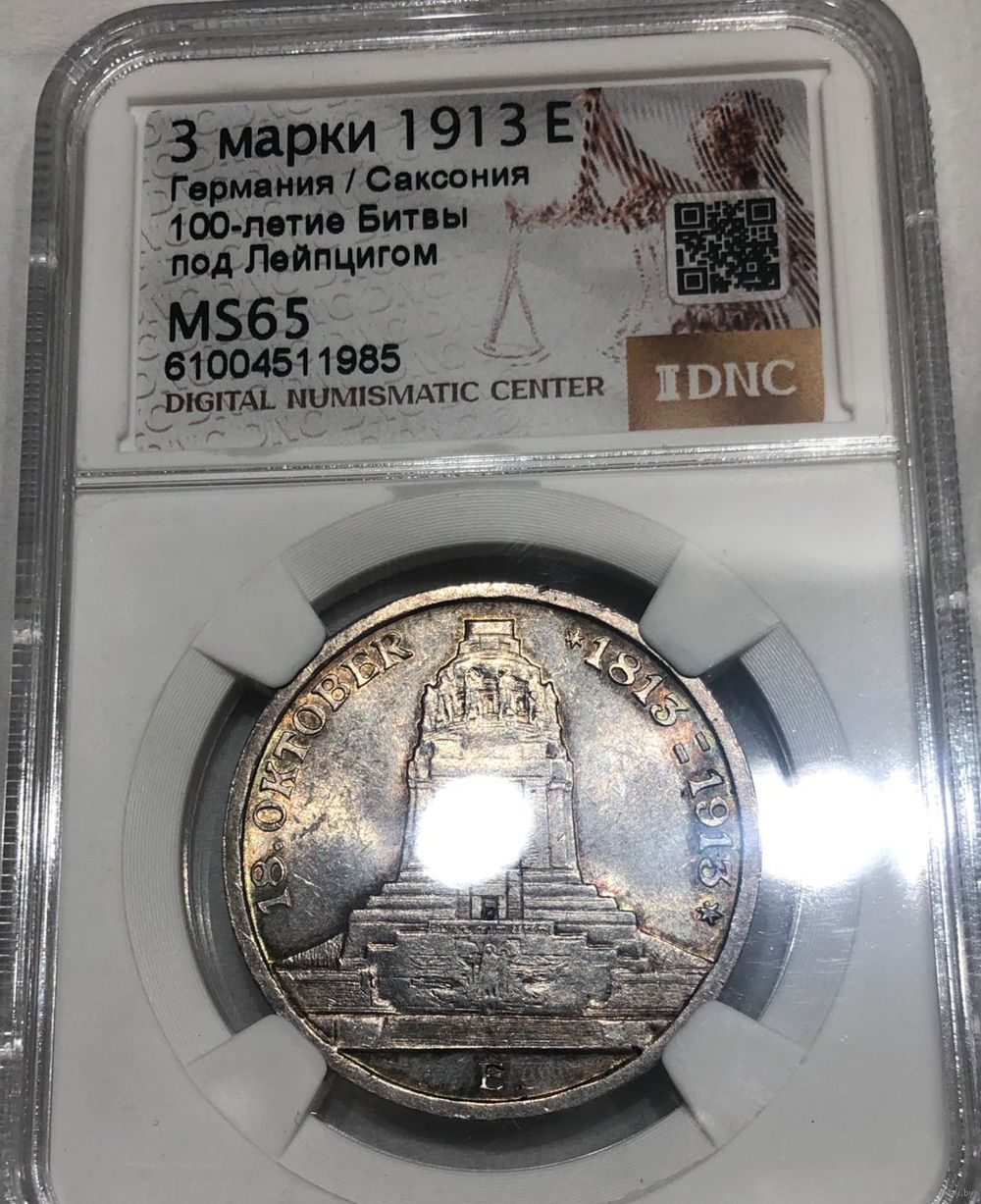 С рубля без мц! 3 марки 1913 Саксония - ms 65 - битва под Лейпцигом