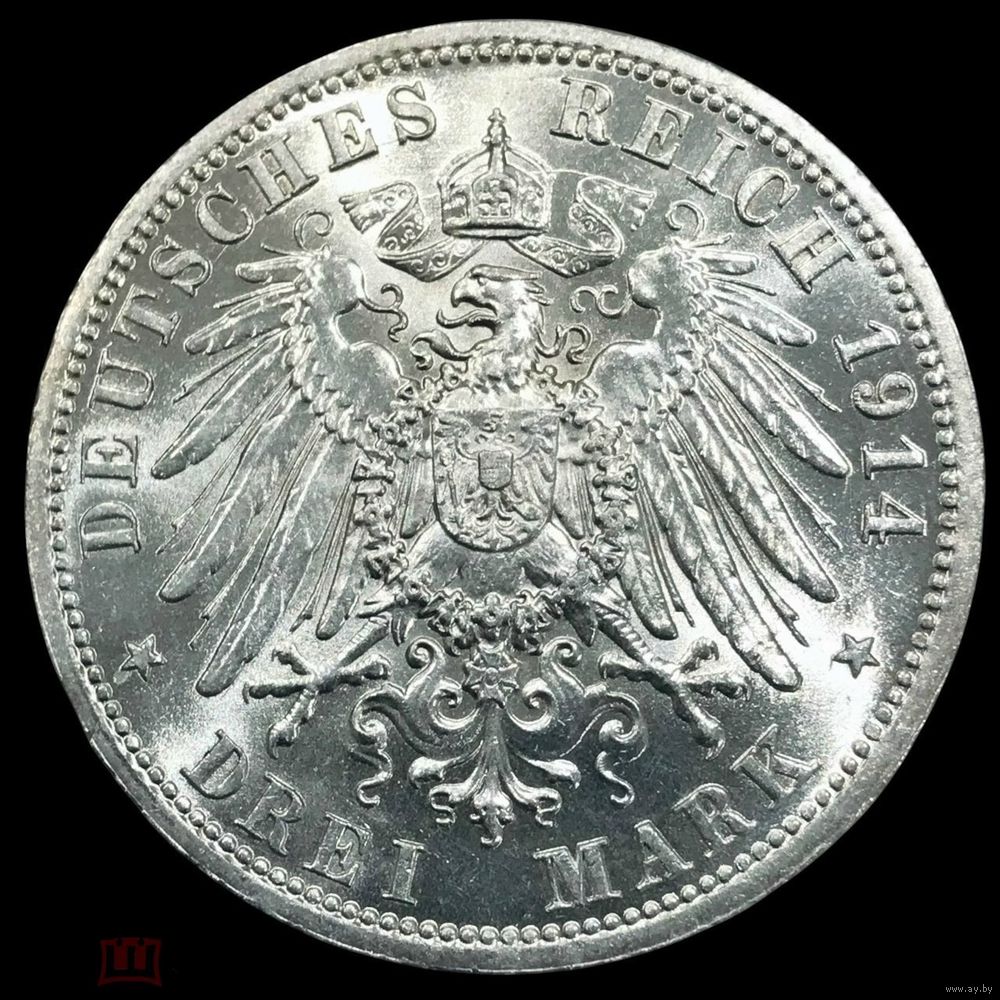 С рубля без мц! 3 марки 1914 Ангальт ярчайший блеск! Нечастая! ГИ в люксе