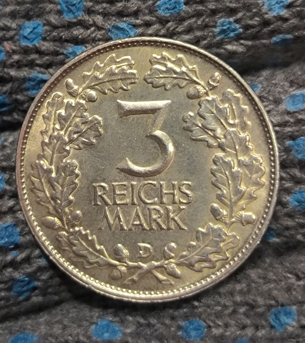 С рубля без мц! 3 рейхсмарки 1925 D рыцарь Веймарская республика нечастый двор
