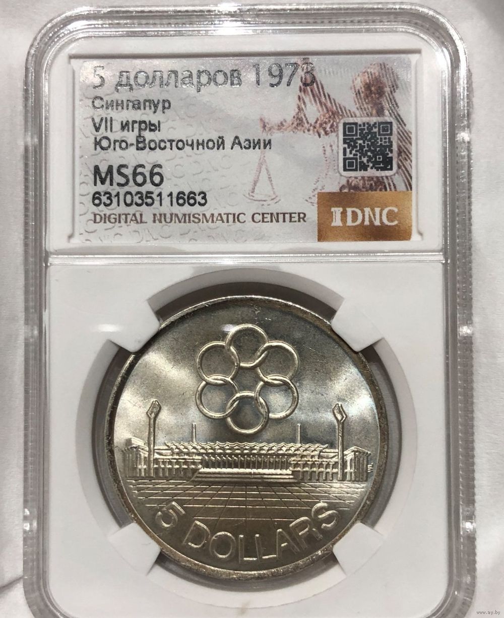 С рубля без мц! 5 долларов 1973 Сингапур ms 66 серебро