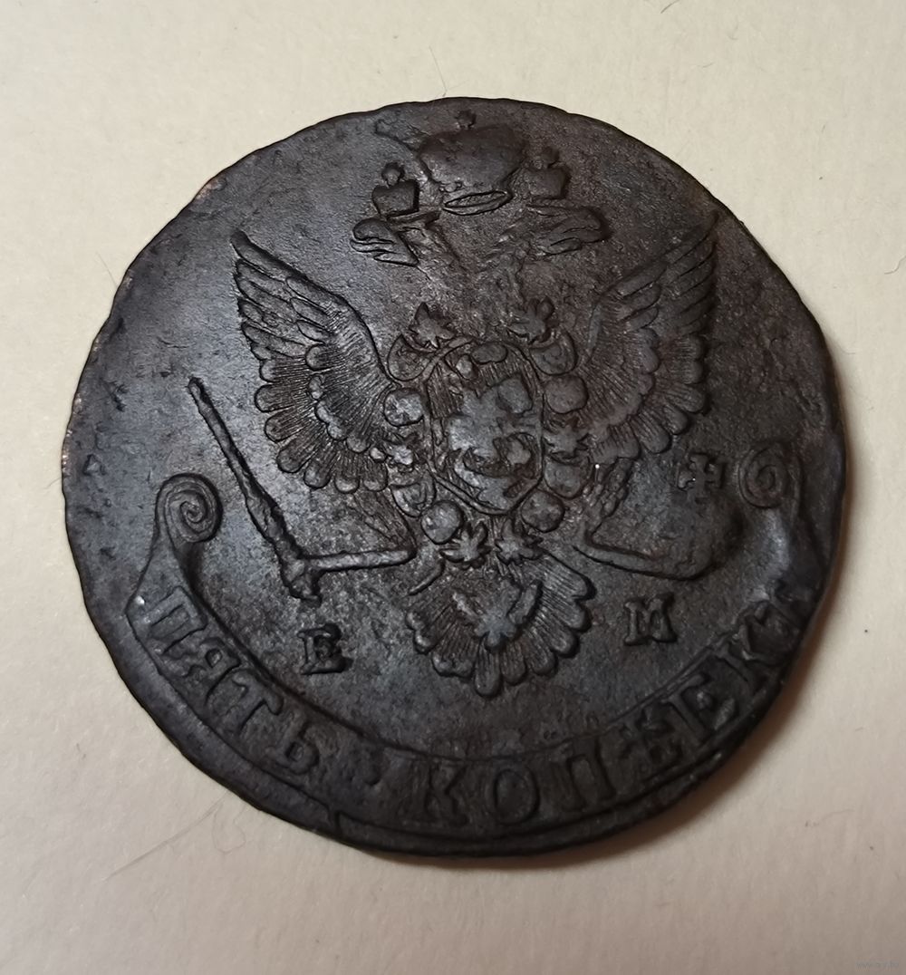 С рубля без мц! 5 копеек 1780 ЕМ Екатерина II в сохране