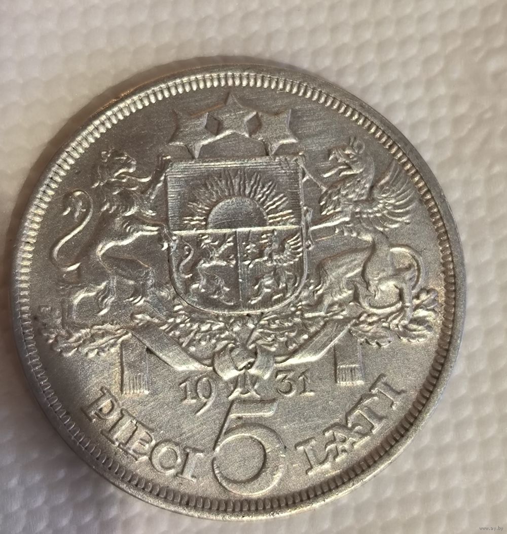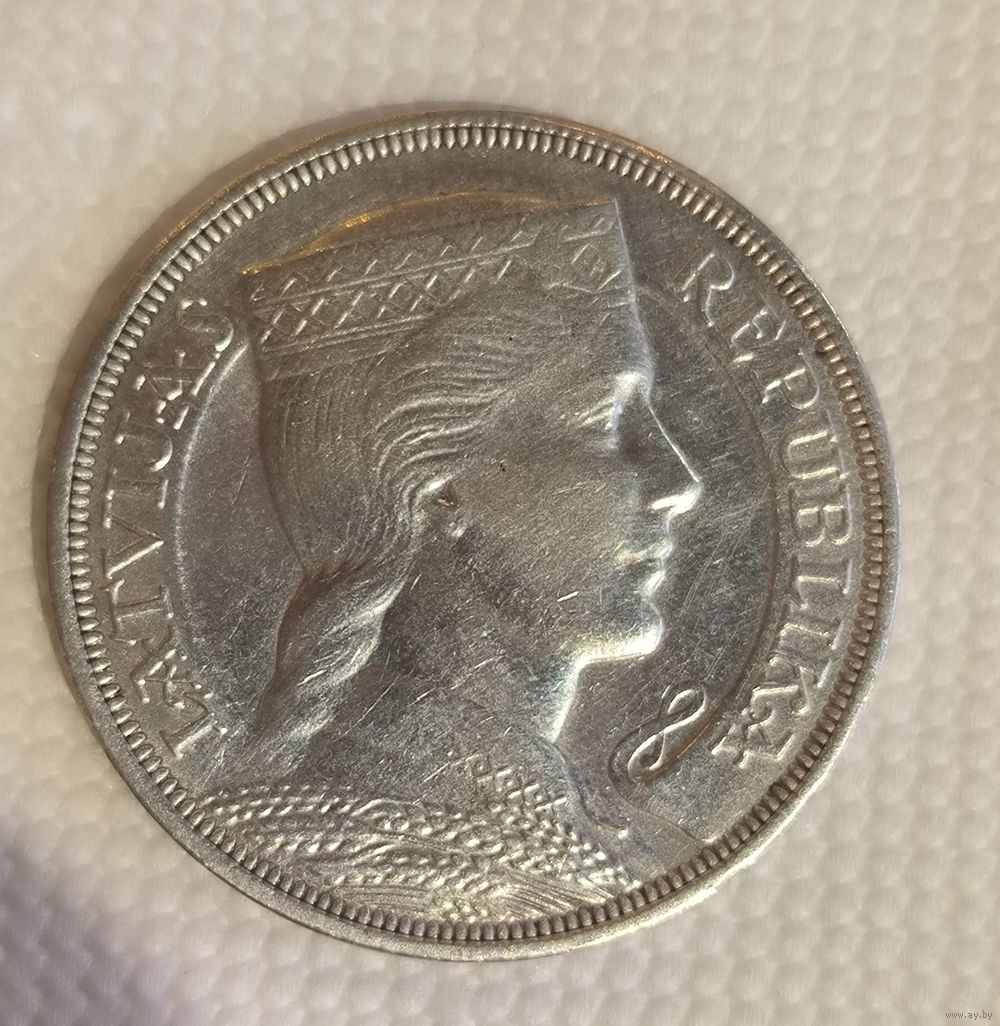 С рубля без мц! 5 лат 1931 Латвия - рельефная! Крупное серебро!