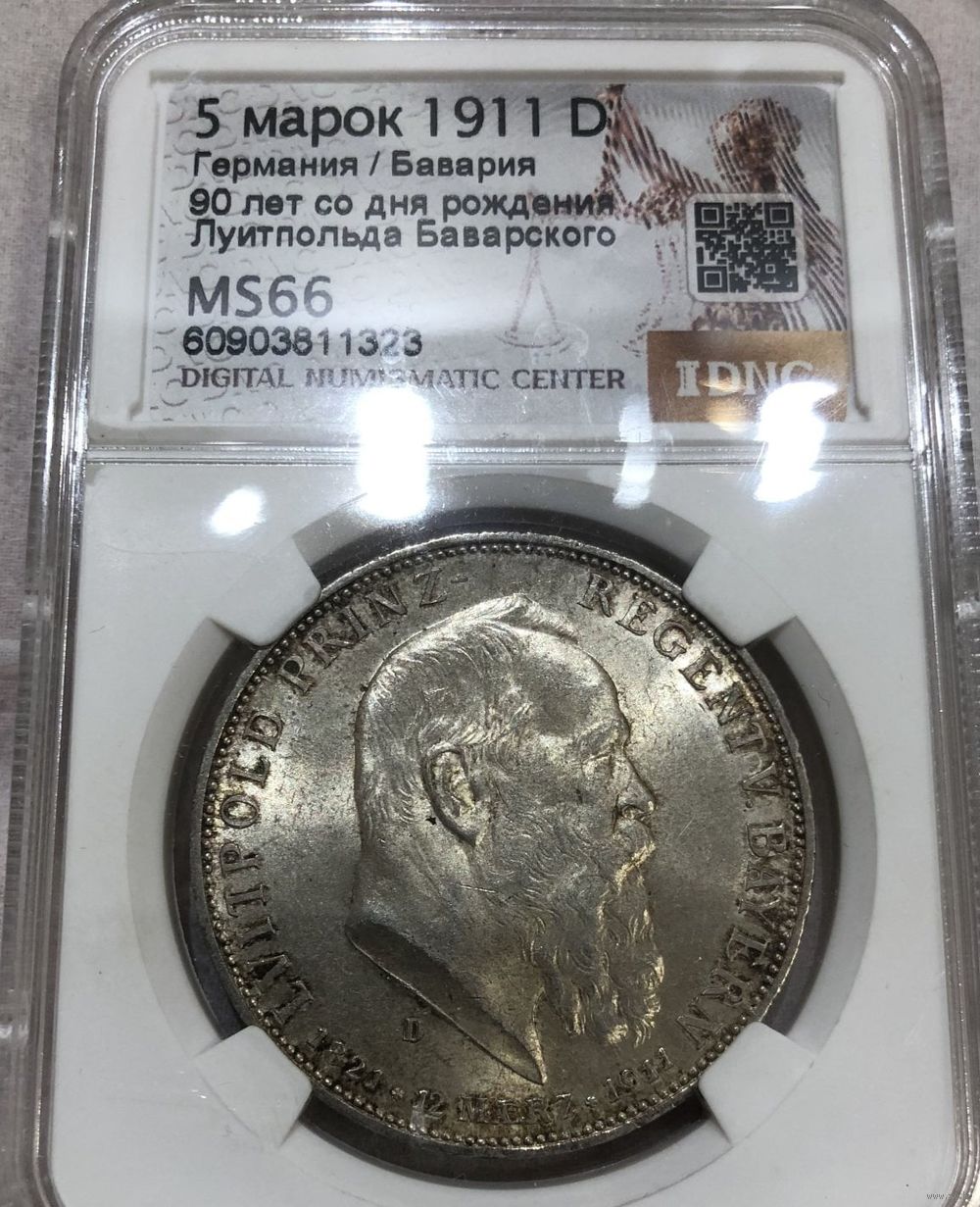 С рубля без мц! 5 марок 1911 Луитпольд Баварский ms 66
