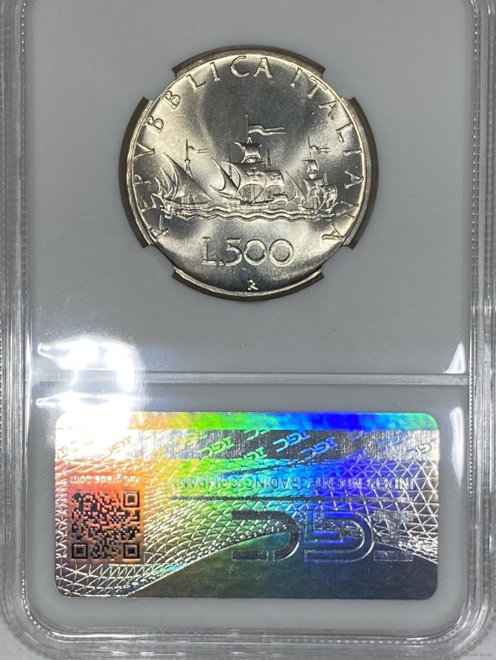 С рубля без мц! 500 лир 1969 кораблик MS 67 серебро Италии