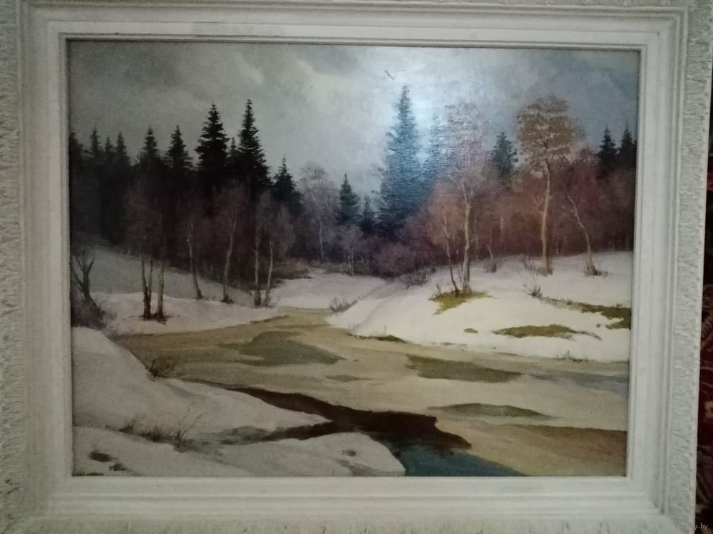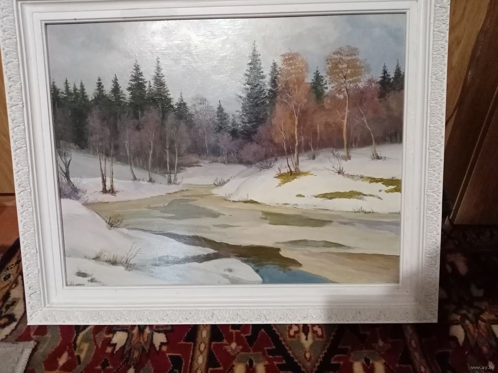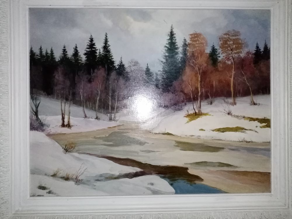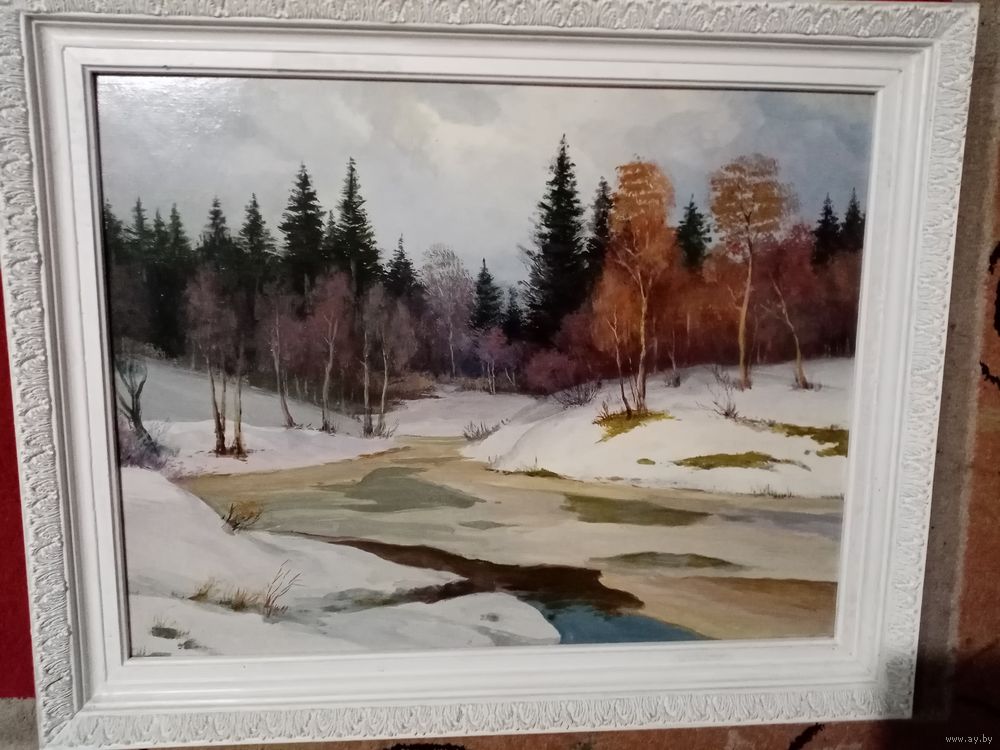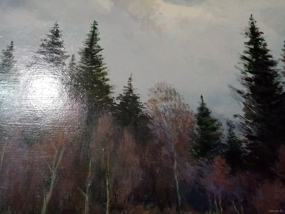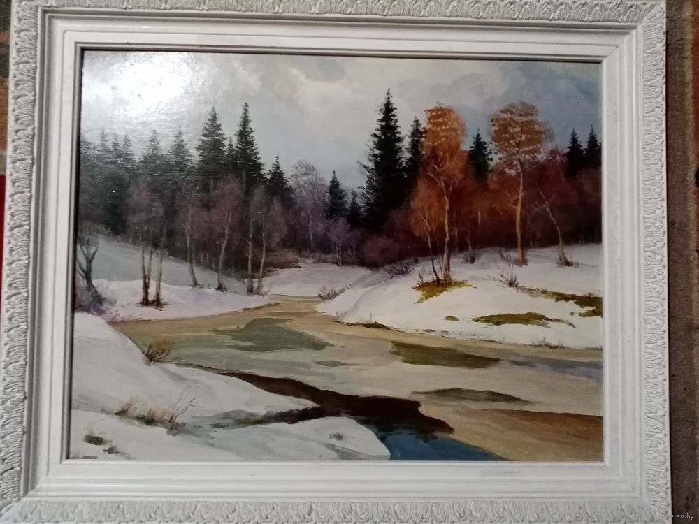 С рубля без мц. картина "Лес зимой", х. фанера. 75х61см.