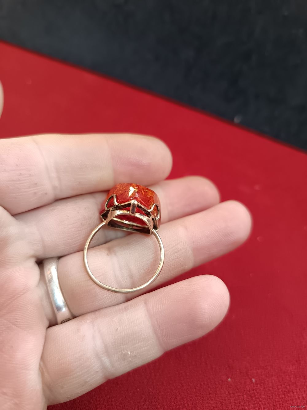С рубля без мц. кольцо с треугольной вставкой на крупный палец. IЯК рЗвезда875пр. диам 2.1см.