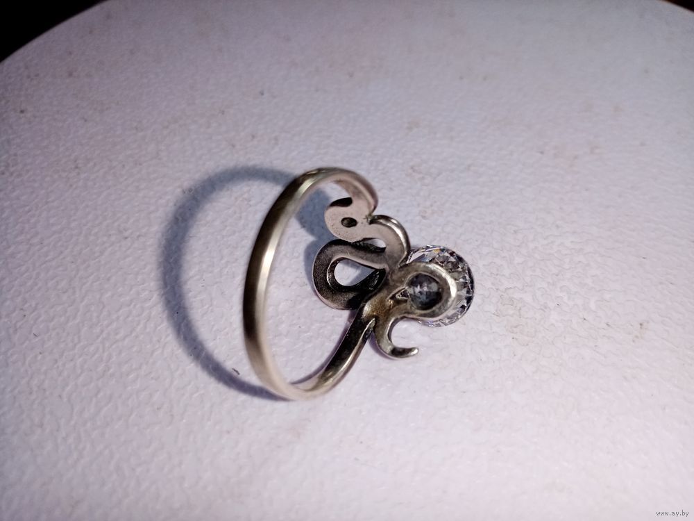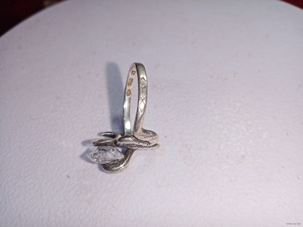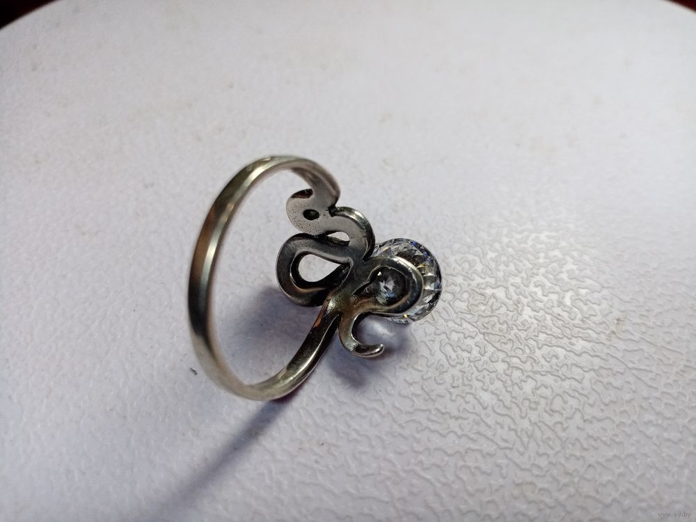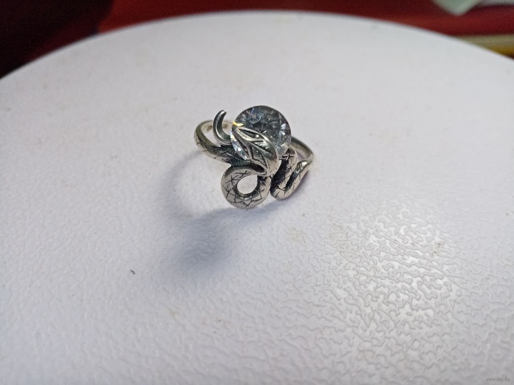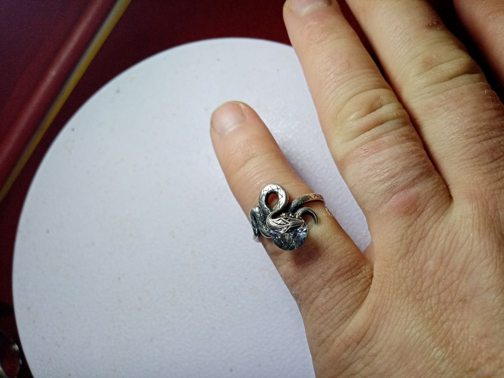 С рубля без мц. кольцо "Змейка", 5ТГ зубр 925пр. на тонкий пальчик 1.6х1.7см.