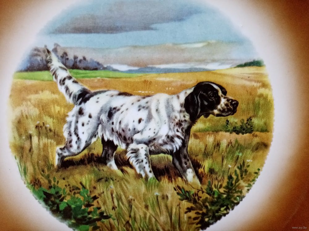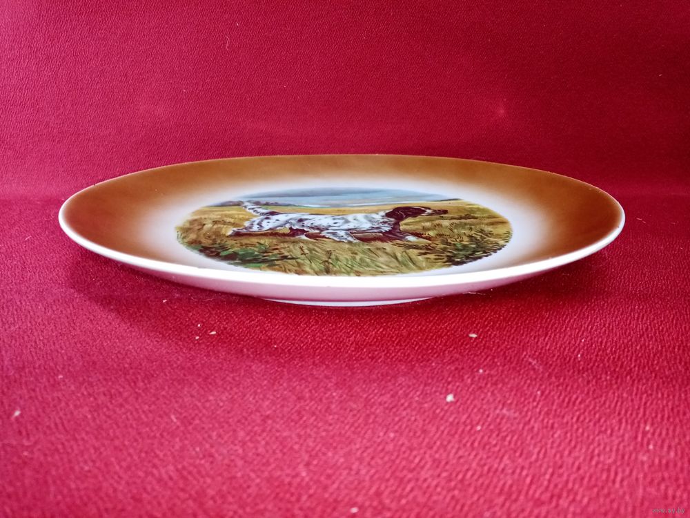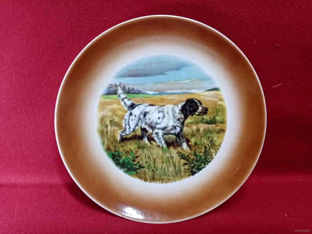 С рубля без мц. настенная тарелка "спаниель". диам 20см.