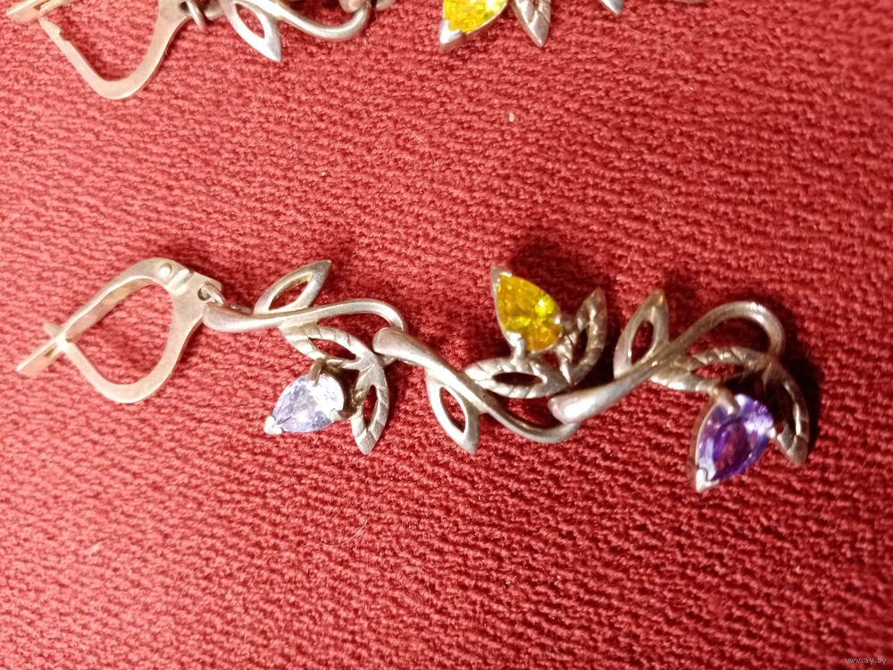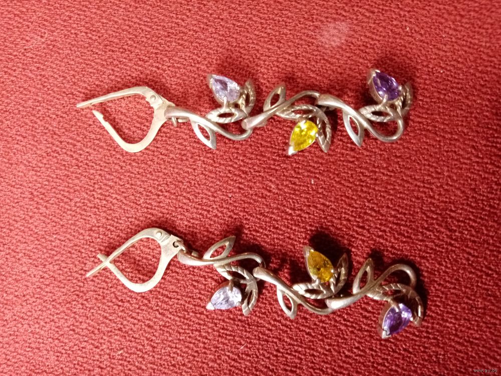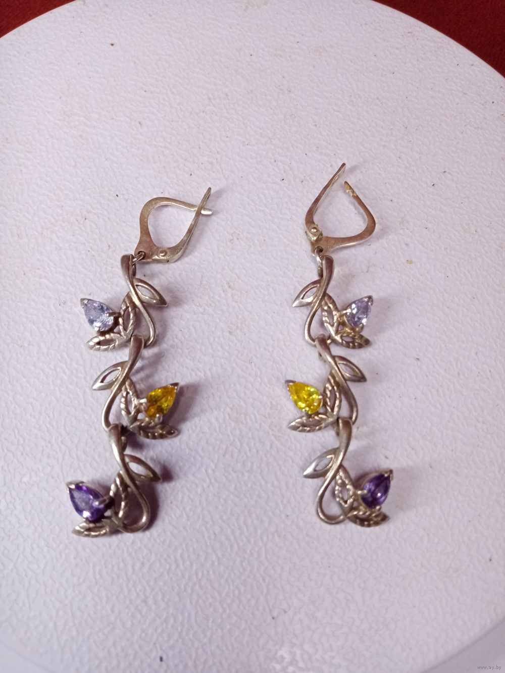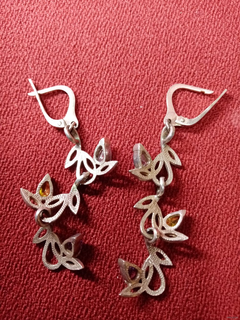 С рубля без мц. серьги "Цветочки" :1J 8ХЮ лист925пр. длина 6см.