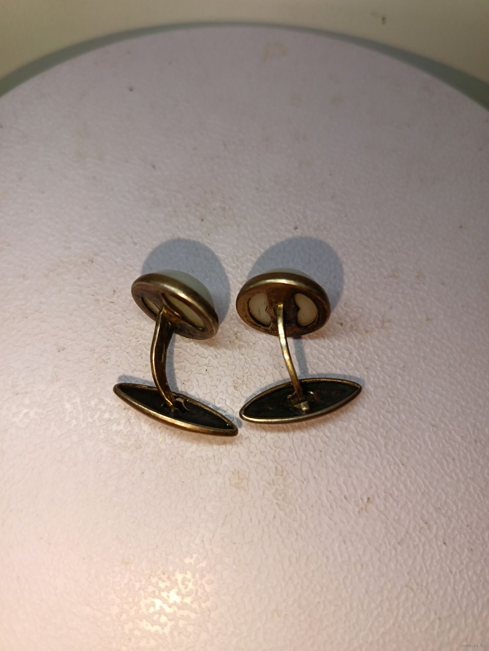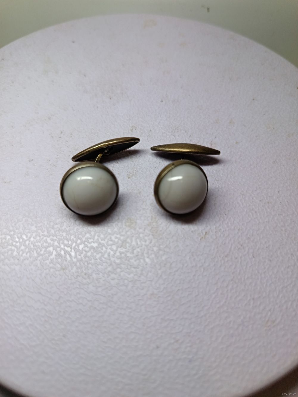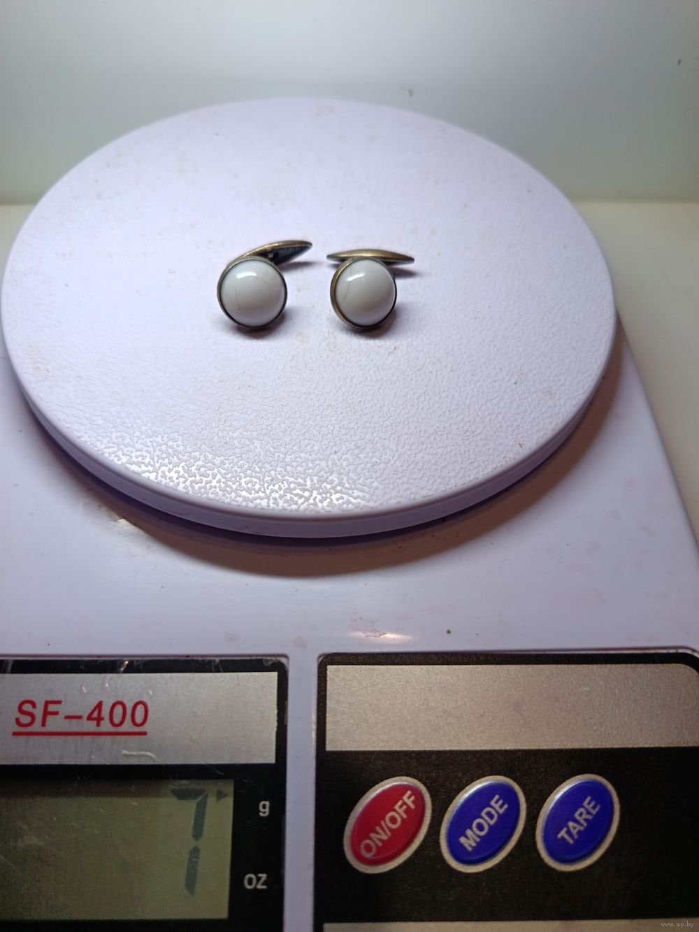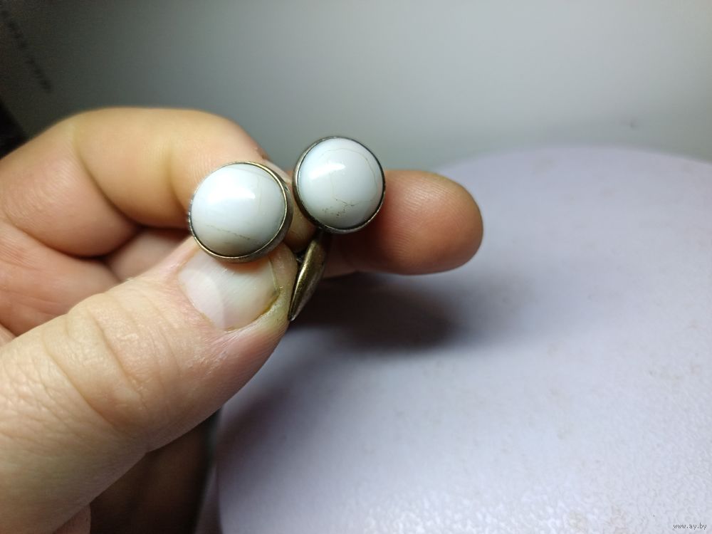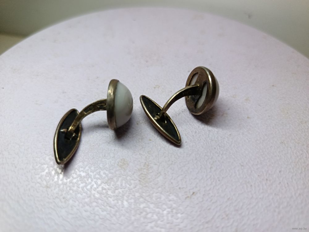 С рубля без мц. запонки круглые с белыми вставками 7гр. КК4 "вГоловаНаправо875"пр.