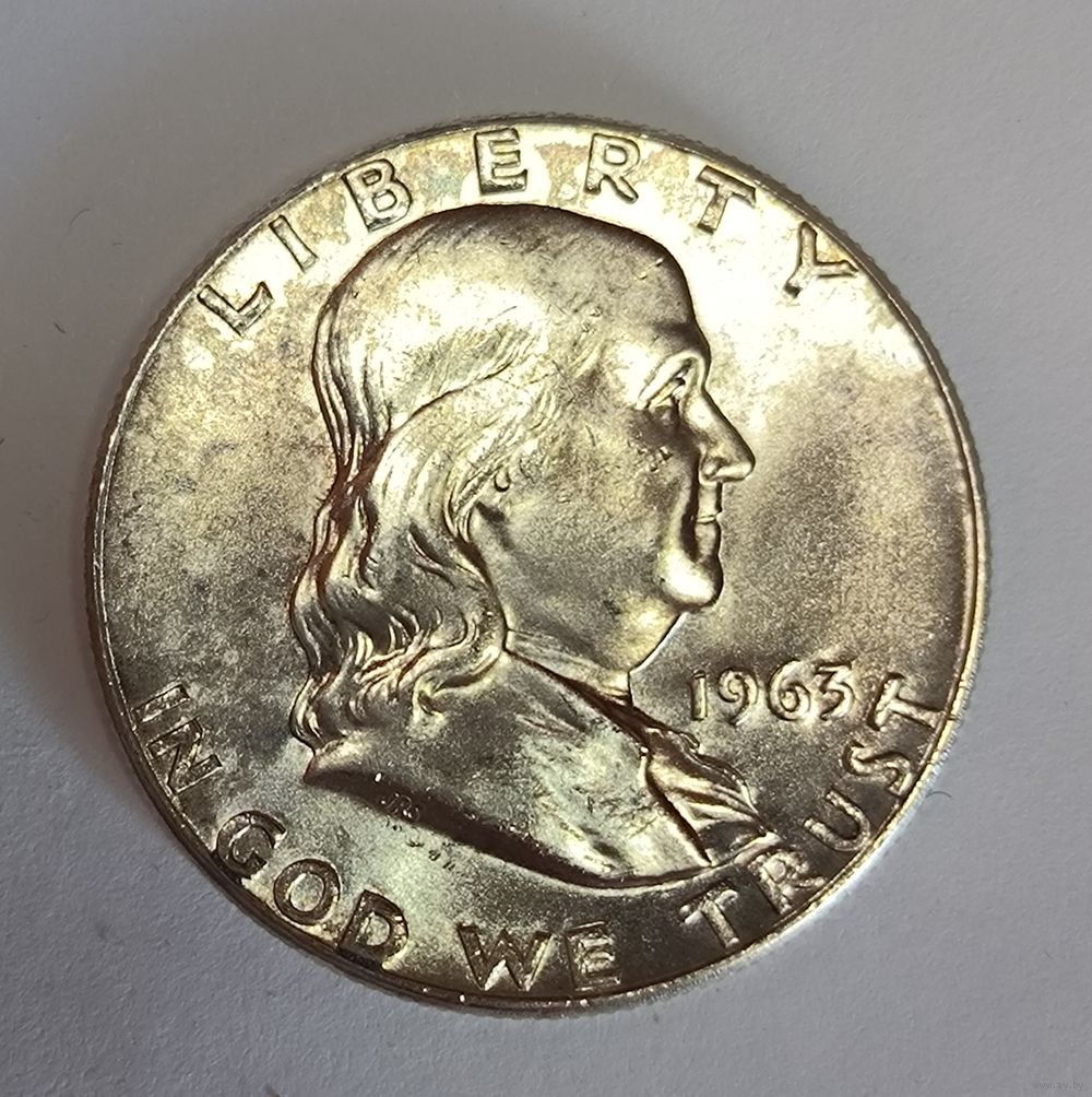 С рубля без мин. цены! 1/2 доллара 1963 Франклин серебро США яркий блеск