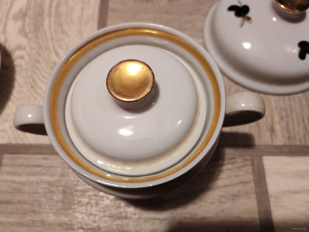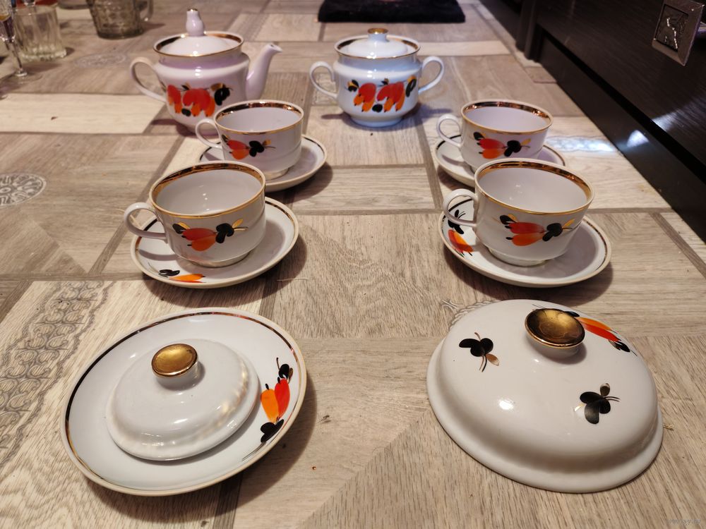 Сервиз некомплектный. В лоте все что на фото. Сахарница, чайник, блюдца, чашки, крышечки. Все целое без сколов и трещин. Цена за весь лот.