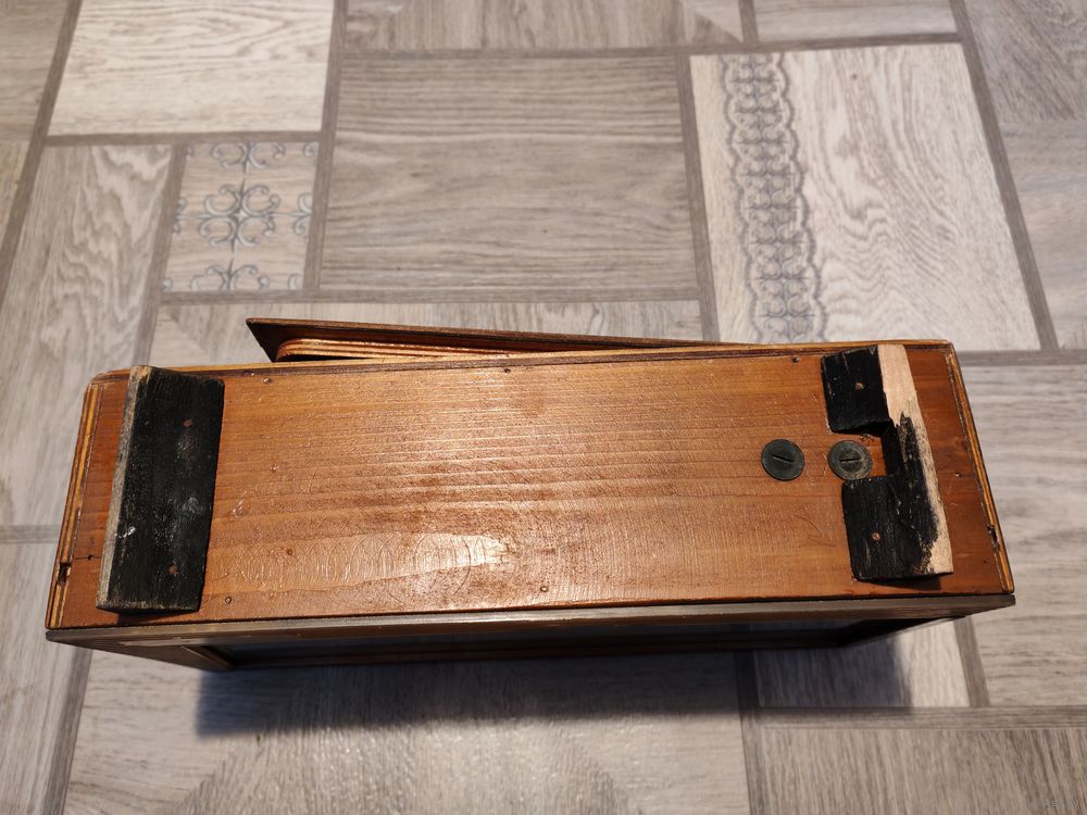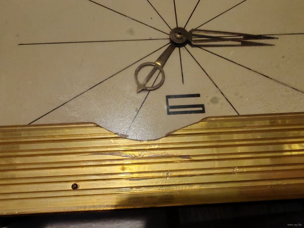 Стекло целое. Имеется небольшой откол пластика, видно на фото. Ключ утерян. Механизм на вид целый.