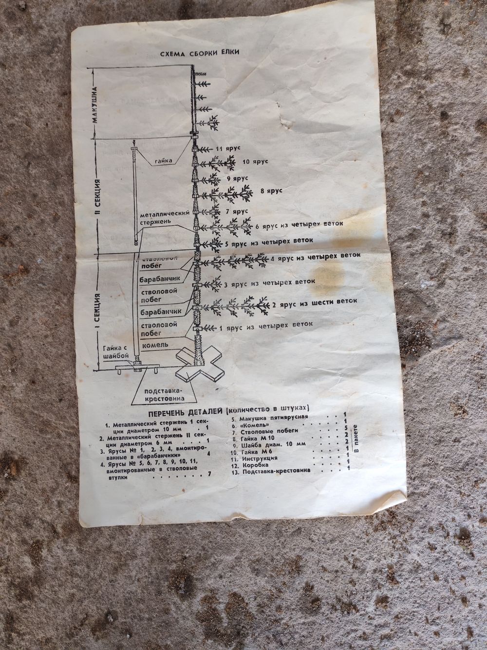 В комплекте ветки и подставка. Не собирали, всю жизнь лежала на антресоли.