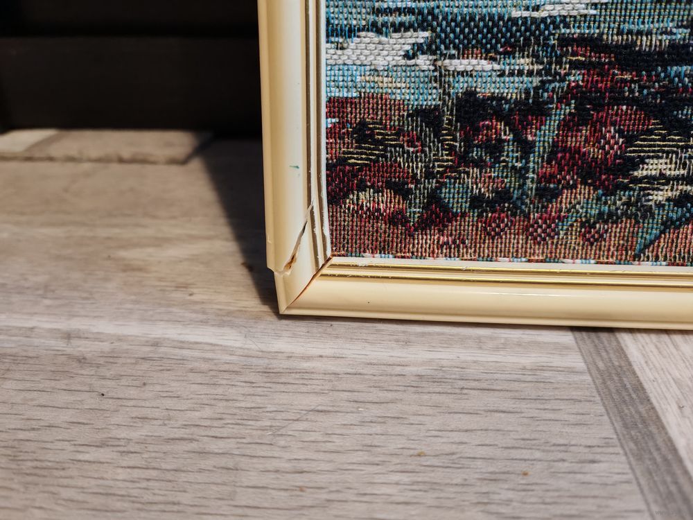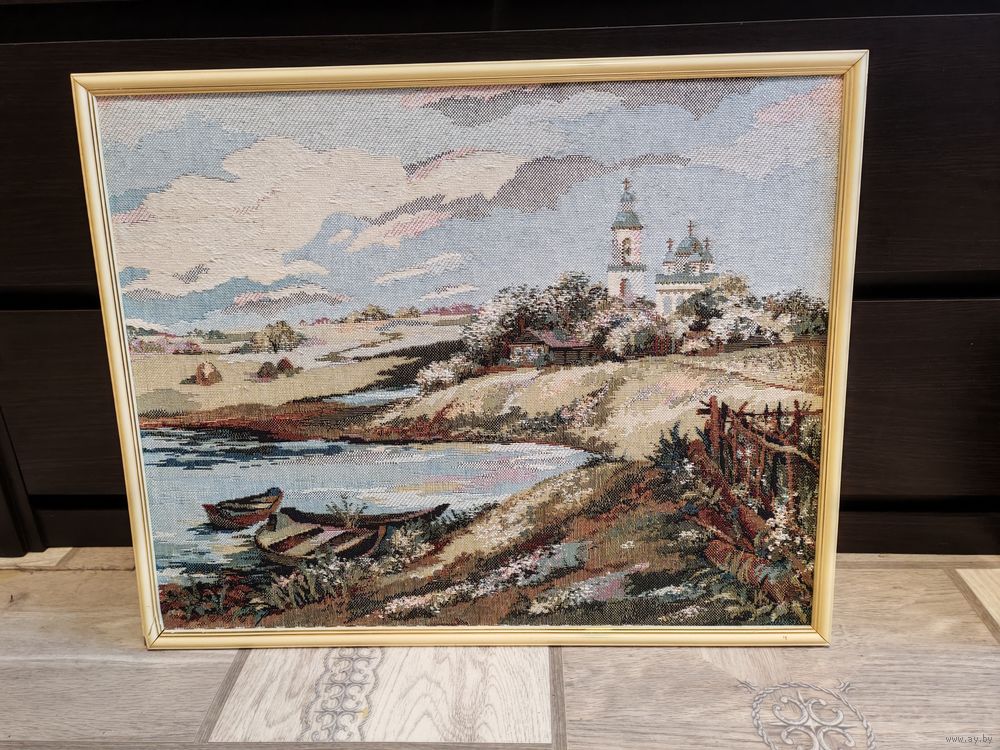 Картина или вышивка на ткани. Подмосковный пейзаж. Имется небольшой нюанс: треснута рама. Размер 55 на 45. Работаю со всеми почтовыми операторами.