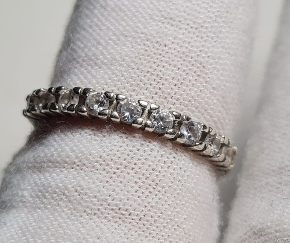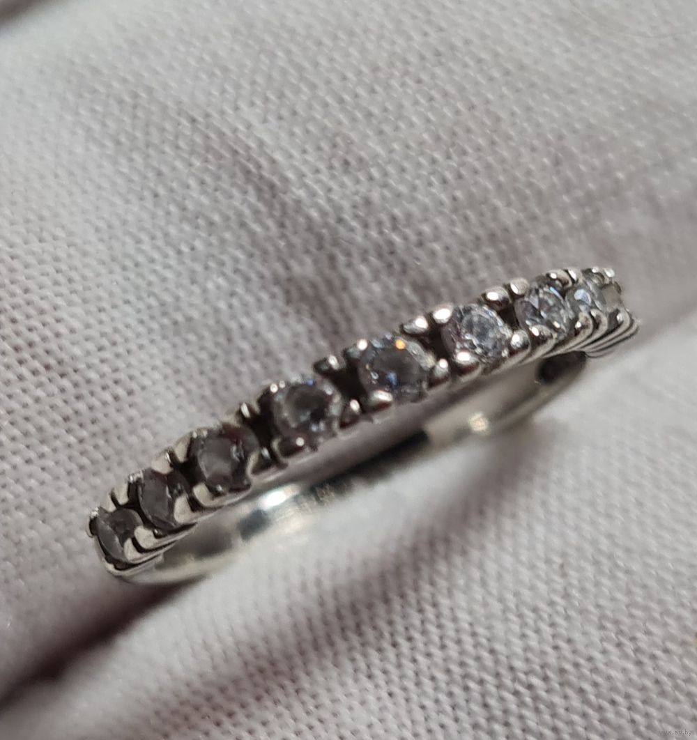 Размер 15,5. Проба подтверждена реактивами. Кольцо б/у, все камни на месте, возможны незначительные следы использования.