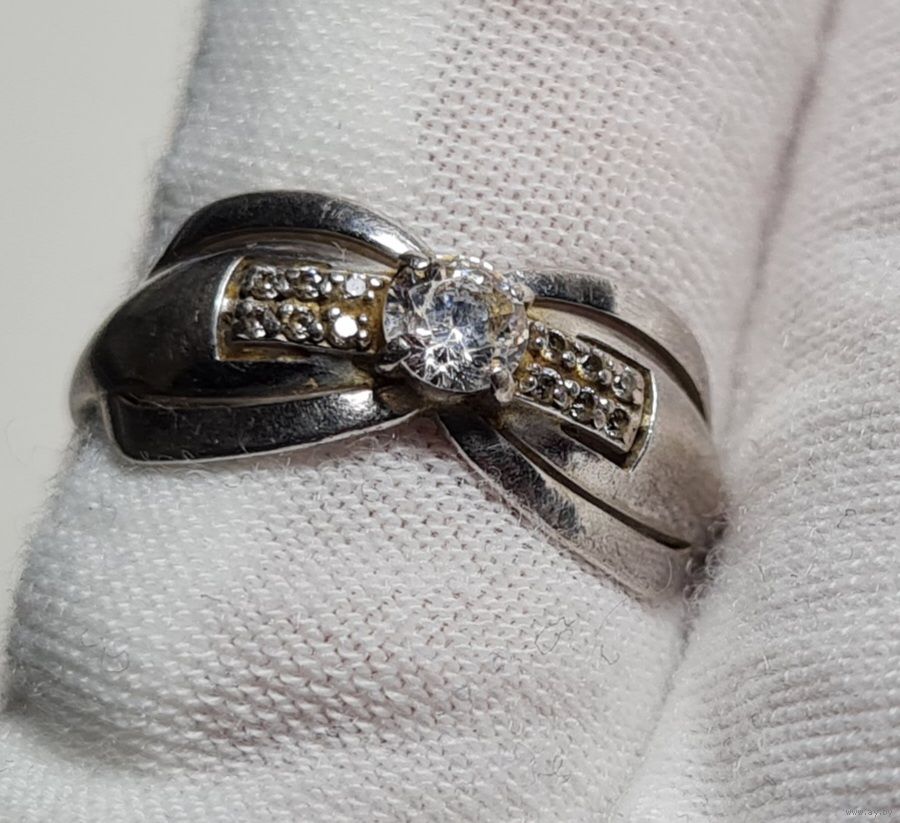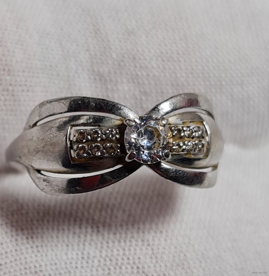Размер 18. Проба подтверждена реактивами. Кольцо б/у, все камни на месте, возможны незначительные следы использования.