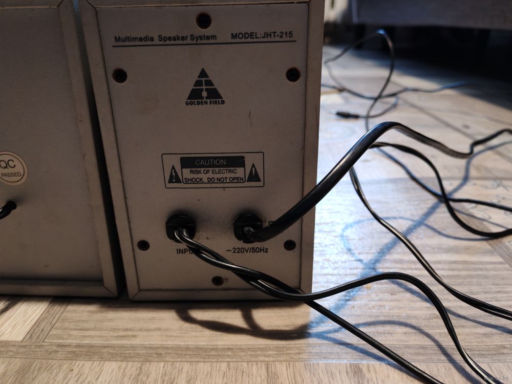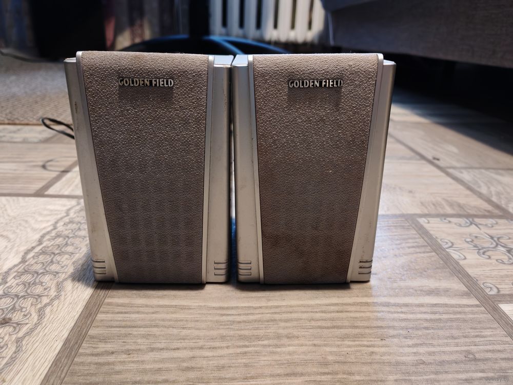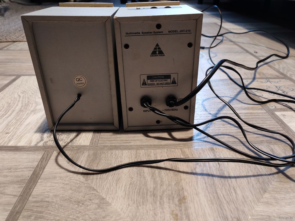 В корпусе из ДСП. Переодически не работает одна колонка, скорее всего надо подпаять кабель.