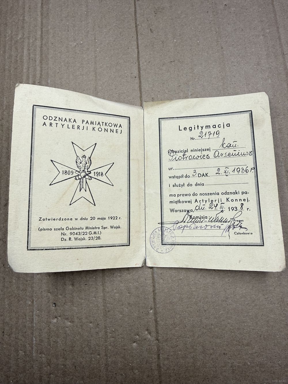 С рубля! Легимитация на нагрудный знак польской конной артиллерии 1936 год.