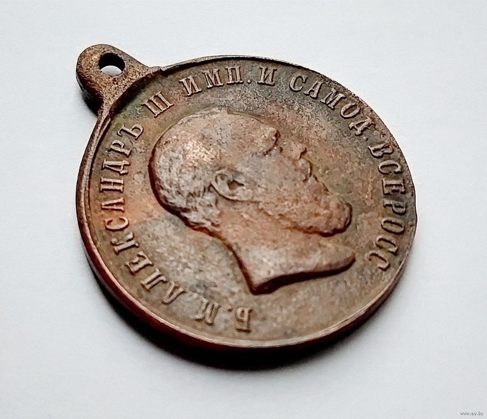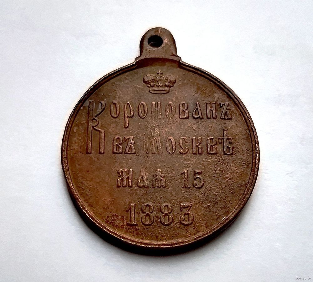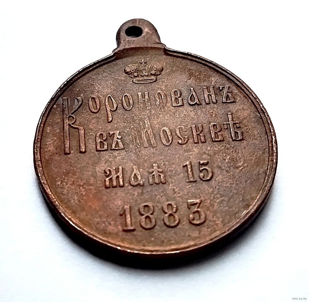 МЕДАЛЬ В ПАМЯТЬ КОРОНАЦИИ ИМПЕРАТОРА АЛЕКСАНДРА III, (тип II монограмма Л.Ш. в обрезе шеи)