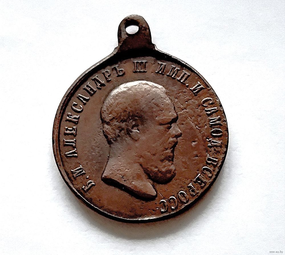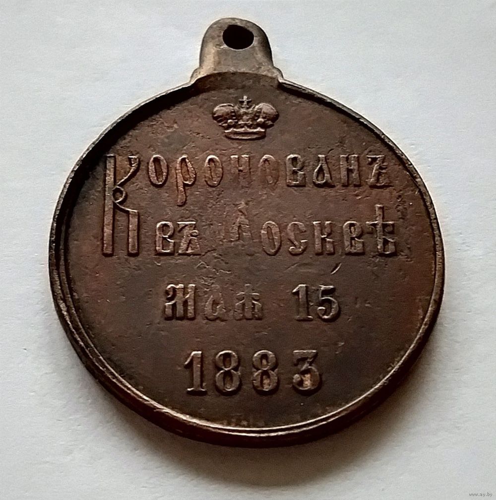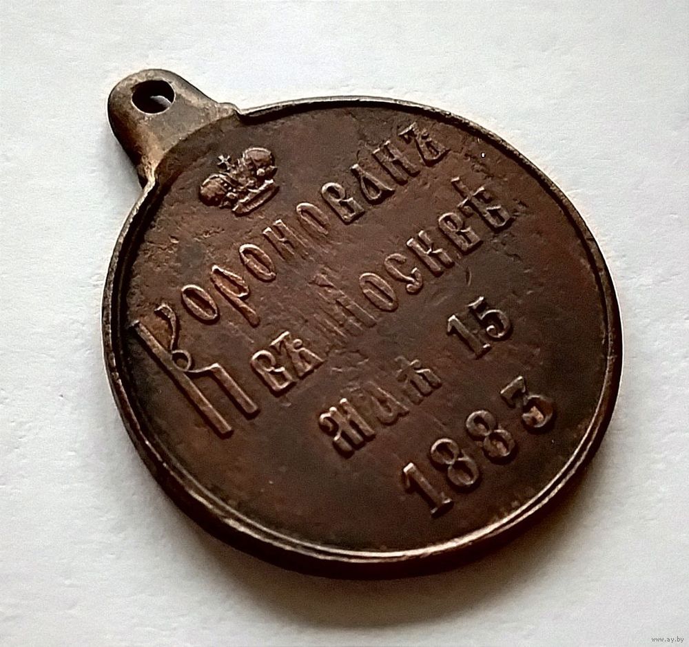 МЕДАЛЬ В ПАМЯТЬ КОРОНАЦИИ ИМПЕРАТОРА АЛЕКСАНДРА III, (тип II монограмма Л.Ш. в обрезе шеи)