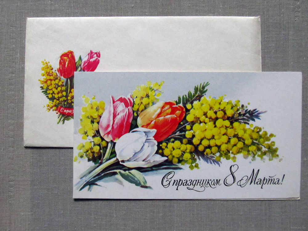 С026-0028 Открытка с конвертом 8 марта Художник Куртенко 1981 Чистая