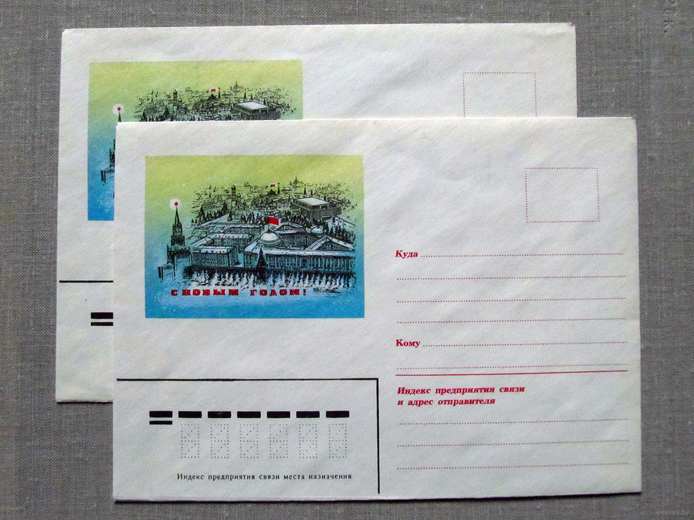 С026-0033 Конверт Чистый С Новым годом Кремль 1970-1980-е
