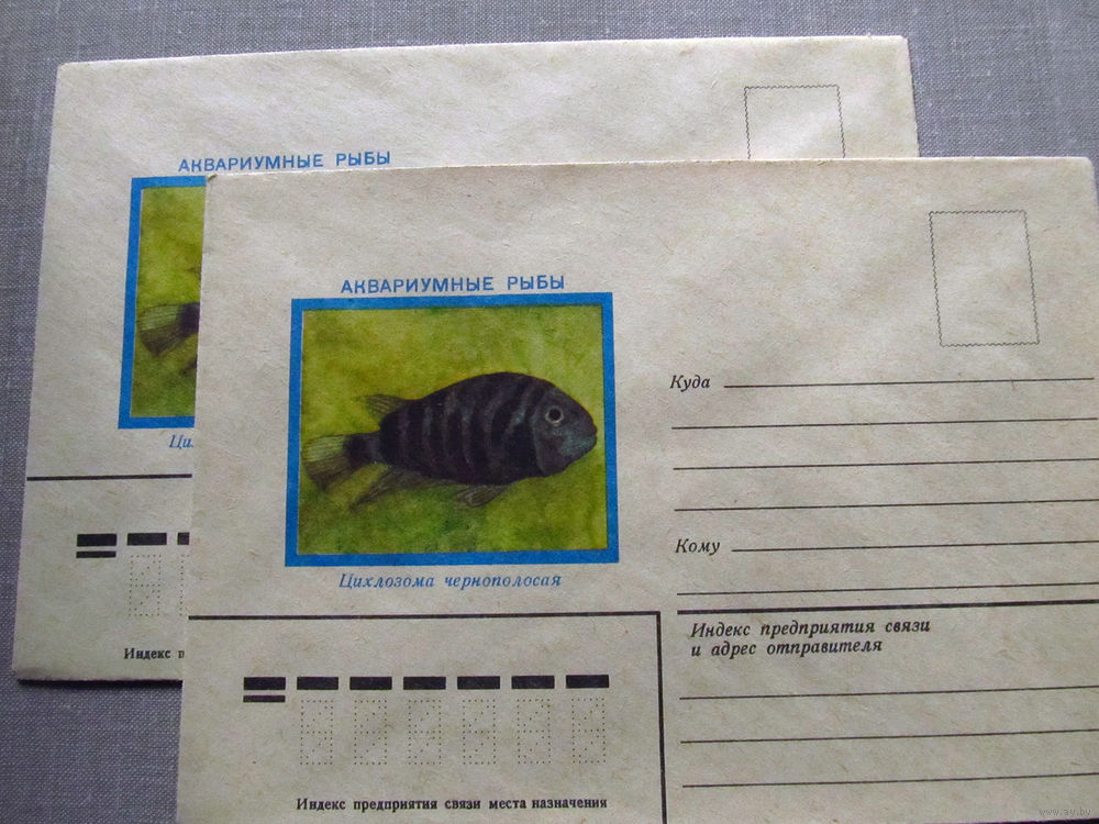 С026-0044 Конверт Чистый Аквариумные рыбы Цихлозома чернополосая 1982