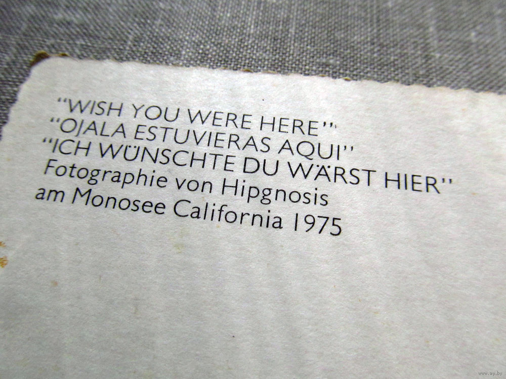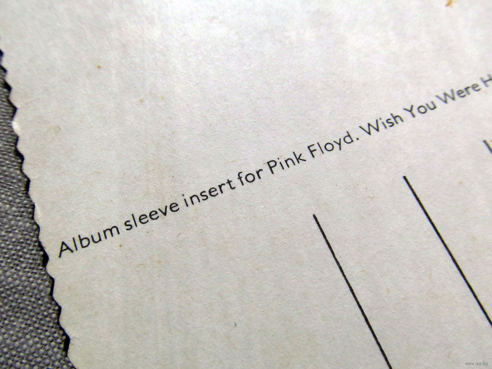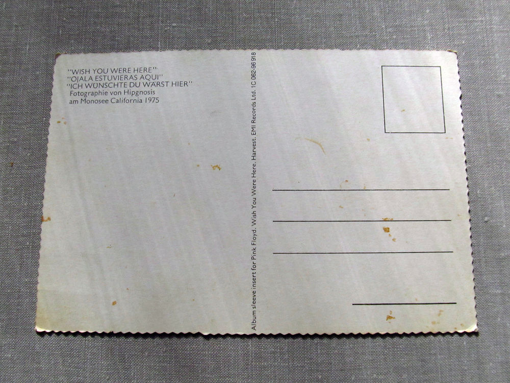 С026-0095 Открытка Pink Floyd Wish You Were Here Harvest EMI 1C 062-96918 Из комплекта оригинального европейского винила середины 1970-х. Края зубчиками. Редкость.