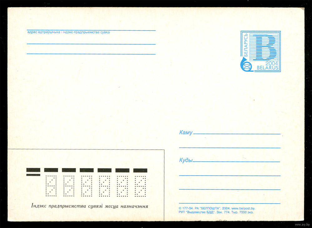 Стоимость пересылки в соответствии с тарифами Белпочты.