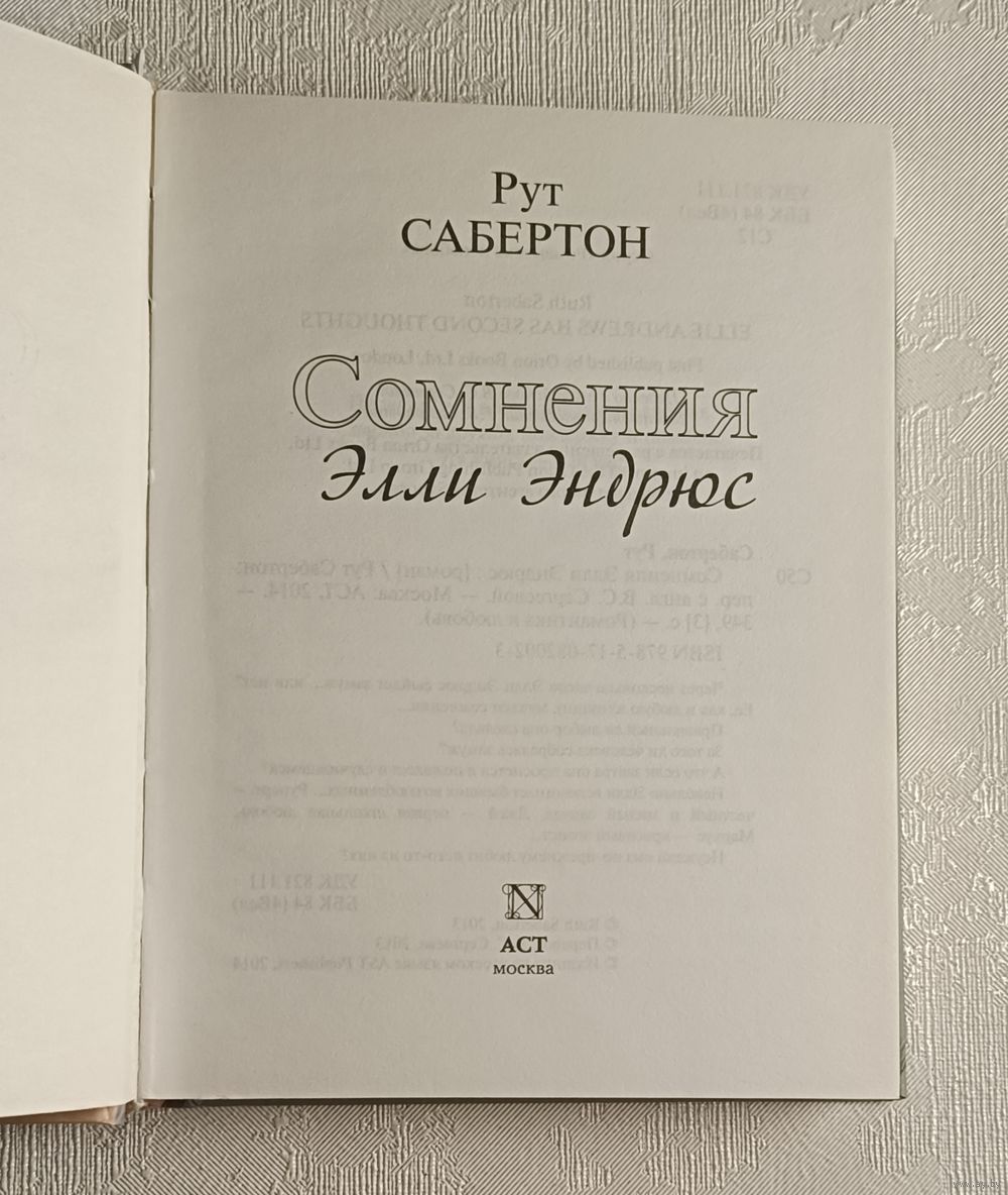 Сомнения Элли Эндрюс Сабертон Рут. Изд. АСТ Москва, 2020, стр. 349, твёрдая обложка, уменьшенный формат 70х108/32.