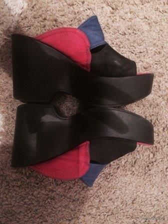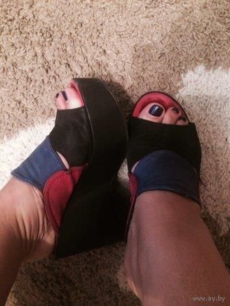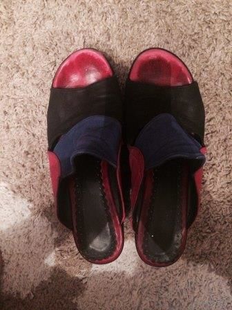 Сабо на высокой удобной платформе на 39,5-40 размер, подойдут и на полную ногу. Качественная натуральная замша, покупала дорого. Италия. Сабо просто потрясные, к сожалению, все таки мне большие.