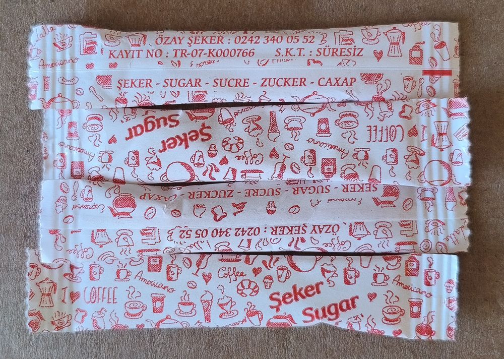 Сахар, сахарные пакетики, Республика Конго (Браззавиль), см. код на фото.