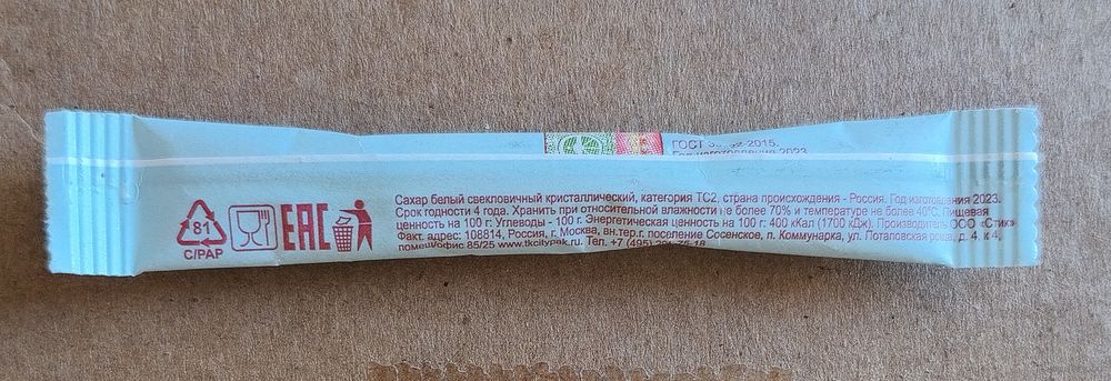 Сахар, сахарные пакетики, РФ, Смоленск, 5 гр.