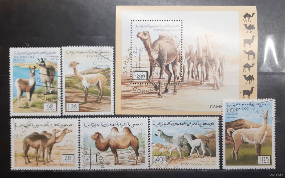 Сахара. 1996 год. Фауна. Ламы, верблюды (блок и 6 марок) (1221)