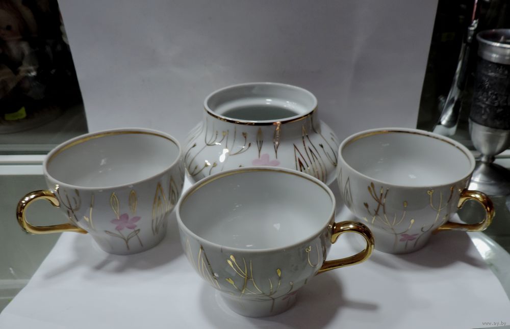Сахарница и 3 чайные чашки 70-80-е годы СССР.