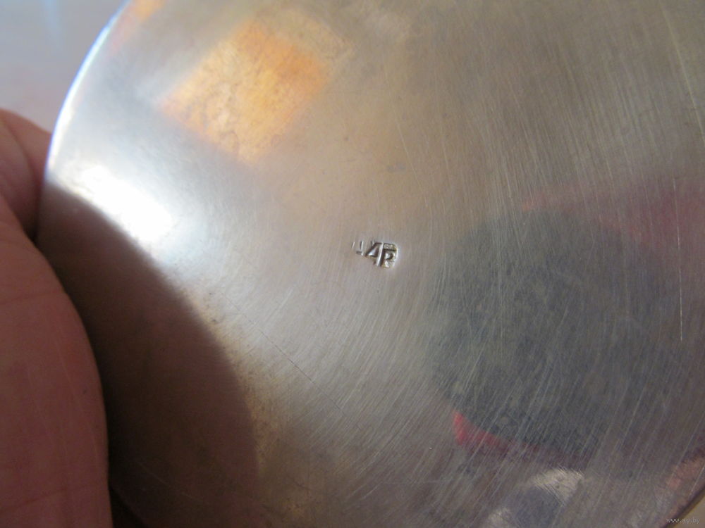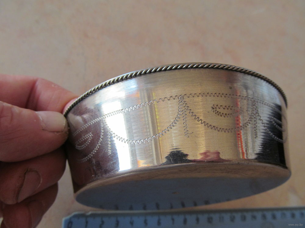 Высота бортика 3,4 см, высота с поднятой ручкой 9,5 см. диаметр горло 11,3 см.диаметр дно 9,7 см. клеймо-4р.