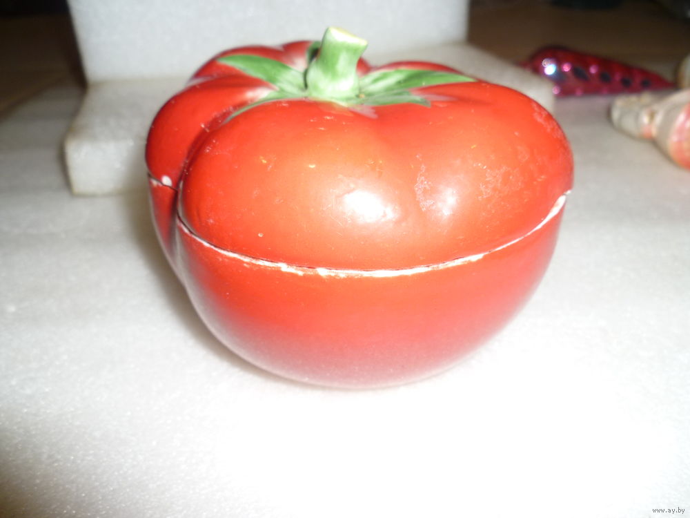 | цвет настоящего спелого помидора, скол на внутренней стороне крышки, потёртости краски, но в реале не очень заметно и не критично, см. фото, в цене учтено | |