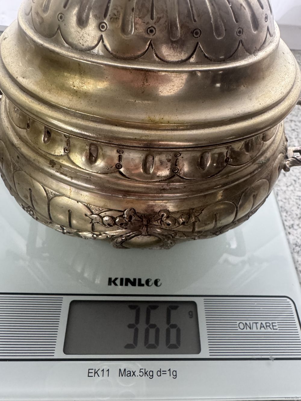 Редкая серебряная сахарница. Серебро 84. Вес 366 гр. Все пробы на фото.