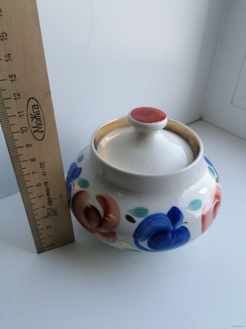 В хорошем состоянии, без сколов и трещин. Есть потёртости позолоты