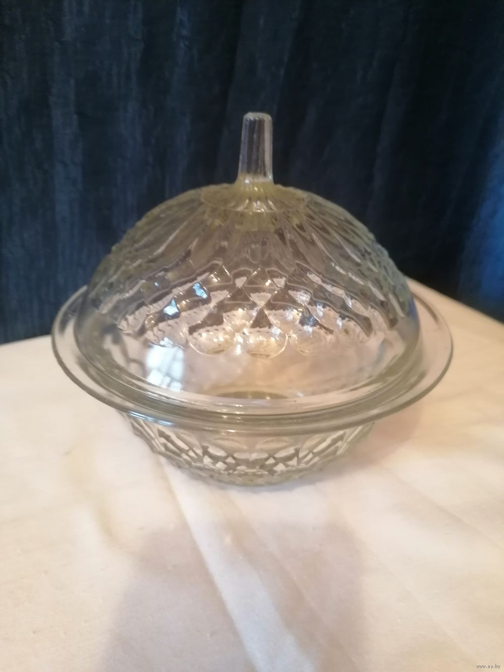 Материал: Прессованное бесцветное стекло с характерным рельефным узором.