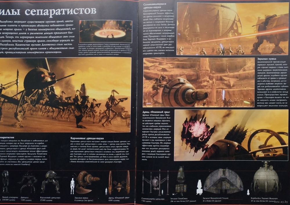 Отпечатано в Словакии. Большой энциклопедический формат. Мелованный альбом. С удивительными местами действия "Атаки клонов" теперь можно познакомиться ближе благодаря этому невиданному ранее, богато иллюстрированному путеводителю. Замысловатые нарисованные разрезы и трехмерные карты, включая великолепную четырехстраничную схему погони на аэроспидерах в небе Корусанта, помогут вам детально изучить мир фильма. Подробные и тщательно подготовленные комментарии сообщат вам множество новой интересной информации. Рассмотрите: